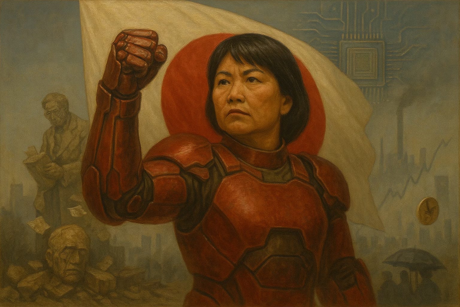 Beneath the superhero pose is a ¥21.3 trillion package where minority politics, chip nationalism and cash handouts try to do the job monetary policy can’t.