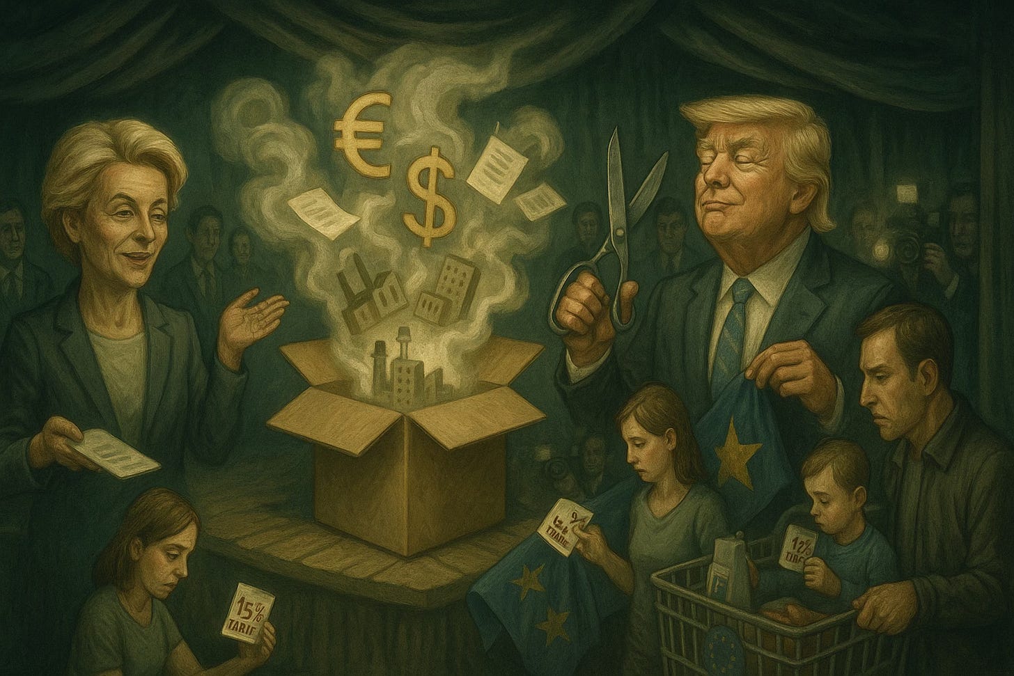 The media breathlessly reports each new fantasy figure without ever checking if the last dozen materialized. And while everyone’s focused on these imaginary investments, something very real is happening: American consumers are about to pay 15% more for European goods.