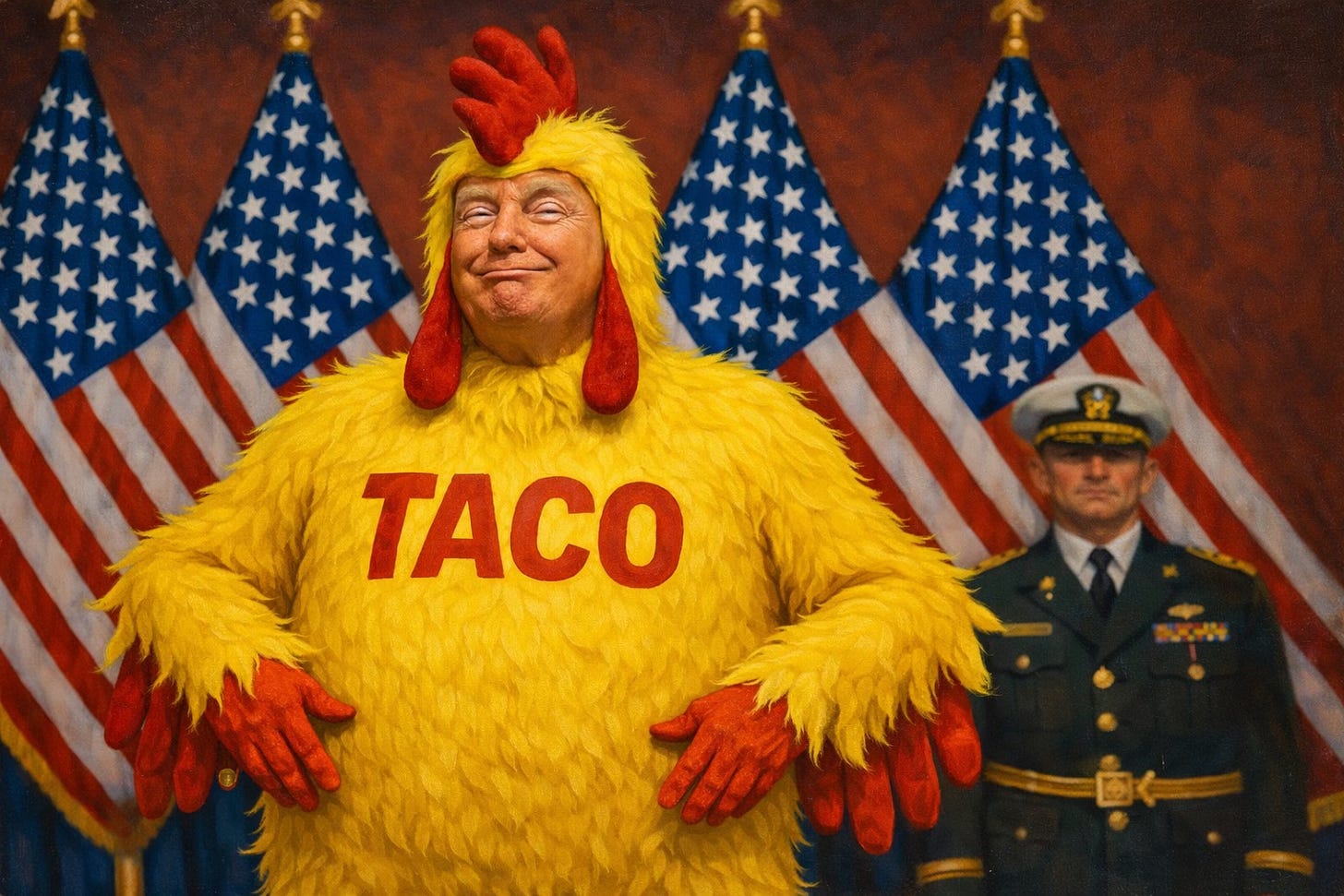At a recent press briefing, a reporter asked about the TACO trade. Trump bristled, visibly angered. I chicken out? I’ve never heard that… Don’t ever say what you said. That’s a nasty question. The emotional overreaction did more than confirm the label. It hinted at something deeper, a crack in the president’s self-image. Being framed as weak struck a nerve. And when Trump gets wounded, he gets erratic.